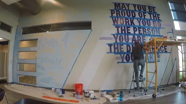 My buddy Adam Vicarel needed help with one of his super dope murals. I was there for assistance, moral support, climbing scaffolding, drinking beer, and just being a bud. That dude is super talented and inspiring. Getting some experience doing murals makes me want to do more!